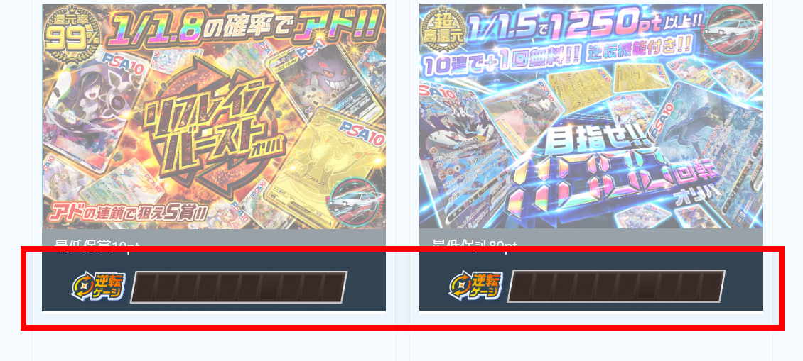 アイリストレカには、オリパを引くごとに当選確率が上がる「逆転ゲージ」搭載のオリパもあります。
